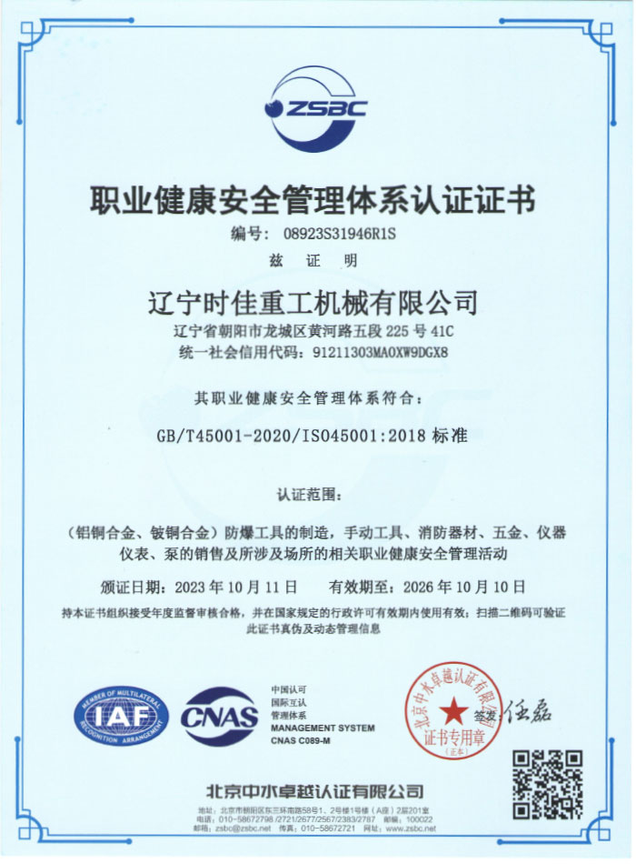 榮譽資質(zhì)-遼寧時佳重工機械有限公司